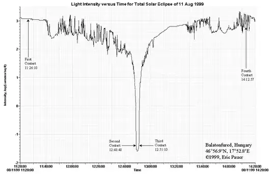I was looking at eclipse footage and I noticed that it doesn't get any noticeably darker until the very end when it suddenly all the light is gone. As the moon blocks out the Sun, I would expect that the brightness would gradually decrease as less of the Sun became visible (e.g. 50% as bright when the Moon covers half of it) however judging from all the videos out there this is not true! I took a look at the Wikipedia article, and it says:
