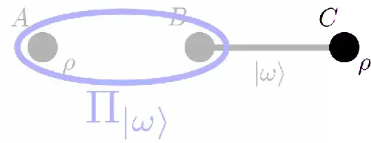 Now project systems $A$ and $B$ on $|\omega\rangle$: