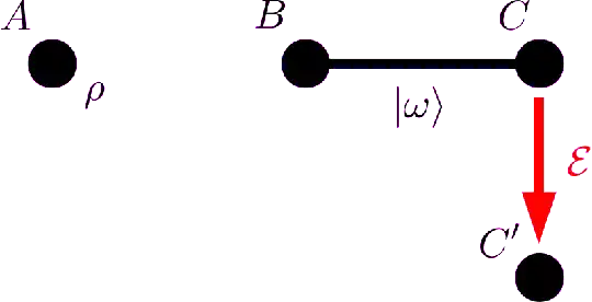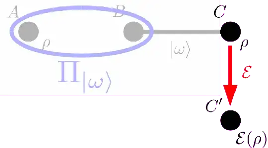 \mathcal E(\rho) &= D\langle \omega|_{AB}\rho_A\otimes \eta_{BC}|\omega\rangle_{AB}\\