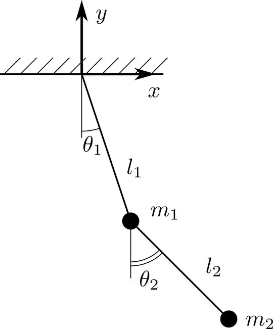 \frac{1}{2} m_1 l_1^2 \dot \theta_1 \dot \theta_1 + \frac{1}{2} m_2 \left[ l_1^2 \dot \theta_1^2 + l_2^2 \dot \theta_1^2 + 2 l_1 l_2 \left(\cos(\theta_1 - \theta_2)\right) \dot \theta_1 \dot \theta_2 \right]