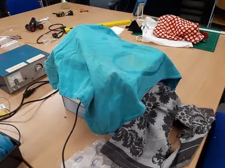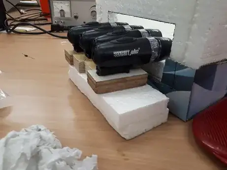 Setup when operational. We used towels to insulate the chamber as a whole. Might be a little overkill though.
