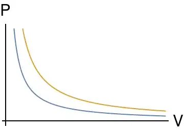 This would mean that $P_{2}=P_{1}V_{1}/V_{2}$ where the starting state $P_{1}V_{1} = k$ is the constant starting state. So if $V_{2}$ increases, $P_{2}$ decreases in a linear fashion.