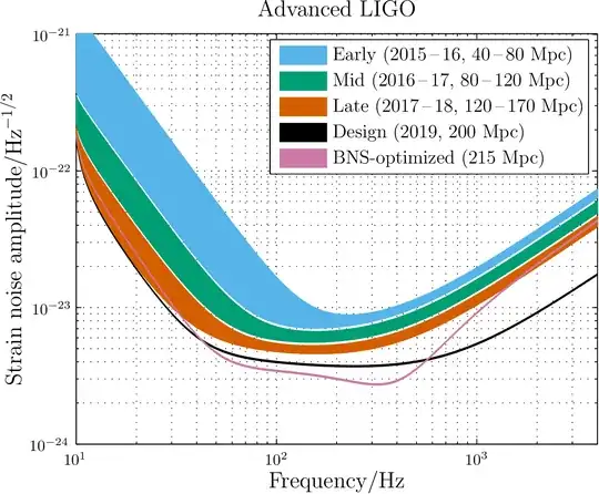 A nice, recent example of this in action is the noise sensitivity curves for LIGO and other gravitational-wave detectors as a function of frequency: