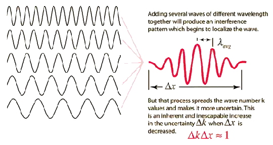 In any case, if you make a splash, the surface of the water will be messy at first, but the waves that spread out will look like nice clean sine waves with well-defined peaks and troughs, because all the components of the original mish-mash of wavelengths travel at different speeds and separate out from one another.