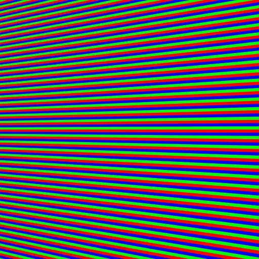 - the top half of the picture has rgb scanlines sloping slightly upward with respect to the pixel rows,