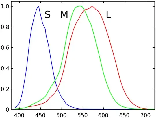 Here’s a diagram of a typical human eye’s photoreceptor sensitivities:
