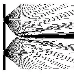 In case you don't know, when light from same source are passed through two parallel slits, an interference pattern like barcode is formed on second screen. Its like water wave interference.