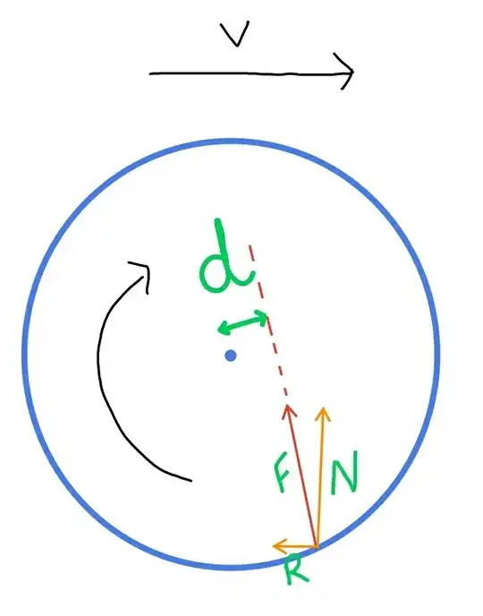 Here, the torque can be given as $F.d$ which will act against the rotating motion(You can use simple geometry to understand why it will act against. If any issues with that, feel free to ask for clarification in comments). Further, this force can be divided into two components to analyse the resultant acceleration. The vertical component $N$ will not contribute towards linear acceleration as it will be balanced by the weight, whereas the horizontal component $R$ will act as shown, and contribute towards retardation, opposing the velocity.