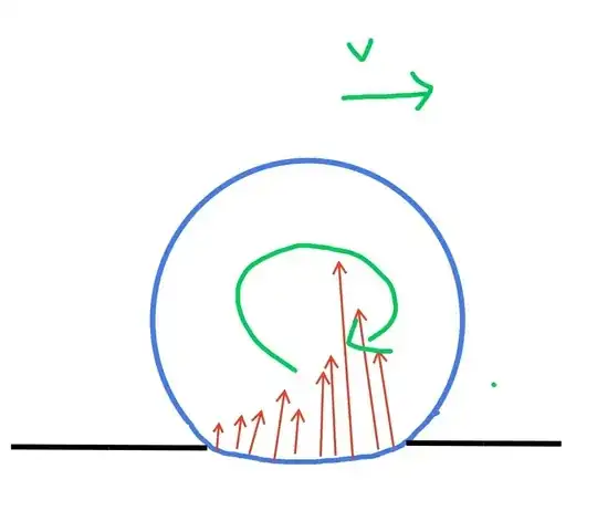 Here, a portion of the sphere is in contact with the ground, and the points on this portion will existence the force due to ground. In the figure, the red arrows indicate the forces, with their length proportional to the magnitude. The forces at the front will be greater than the forces towards the back. This is also clear according to this which says: