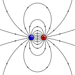 I understand that an electric field is created by electrons and protons. This force is attractive to particles carrying opposite charge and repulsive to like-charge particles.