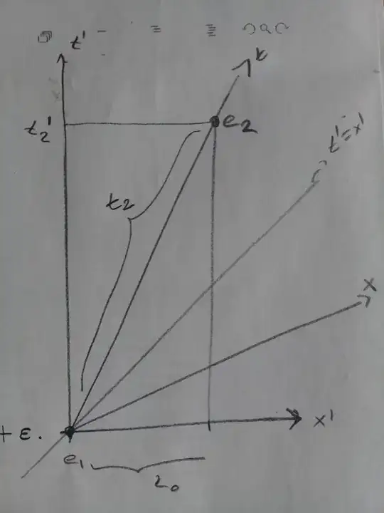 Since we are relying on $t_2$ to calculate the length of the rod, graphically (see the above figure), $$t_2 = \sqrt{L_0^2 + (t_2')^2}.$$