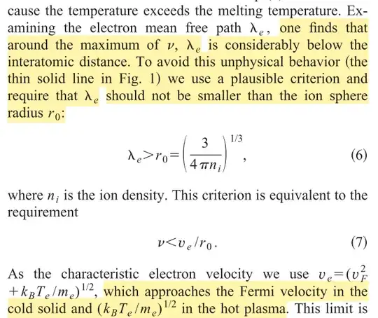 In an article (over 250 citations) on plasma physics I've read a paragraph which I find very confusing. The authors state that there's a minimum mean free path an electron travels before it is scattered which corresponds to the mean distance of ions $r_0$. According to them, a mean free path $\lambda_e<r_0$ is unphysical.