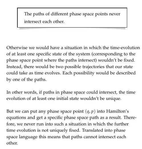 Question: Can't two paths in phase space merge into one single path? It seems to avoid this argument entirely.