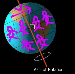Now imagine that people all around the world decide and get aligned together with their motor cars and try to move with some considerable velocity $v$ by pushing the earth back as shown in this figure at the same time.