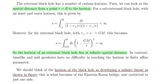 There is an important remark however. The worldline of a massive particle (purple line in the figure) starting from the external region may cross the Killing horizon in a finite interval of proper time exactly as it happens for all non-extremal black holes.