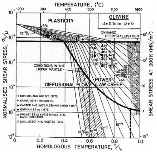 Copper, ice, and olivine are shown together here to emphasize the commonality of creep in material types that aren't often grouped together. Creep is universal.