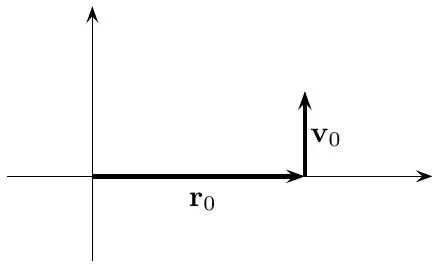 Suppose to have in the origin of axes the Sun, and consider a planet, with negligible mass, with initial position and speed like in this figure: