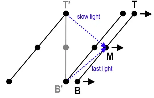It can be clearly seen from the figure, that if the one-way speeds of the light from the two stars differ, then the aberration angle for them must also differ. If we imagine the extreme case of infinite light speed in one direction, then the aberration angle will be zero for a telescope pointed to that star.