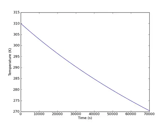 Getting the answer to a coherent format takes some algebra wrestling. For simplification, I collected terms to insert the final temperature calculated before. The "solution" to the differential equation is then: