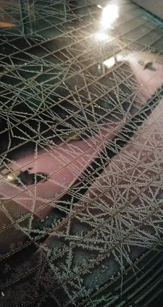 Try the following test: when the windshield is dry and free of ice or liquid water, and above freezing, bring over a steaming tea kettle and blow steam at a portion of the windshield where you have previously photographed the linear patterns. Those same scratches will then act as nucleation sites for the condensation process, and the pattern of tiny water droplets on the glass surface will reveal the scratches.