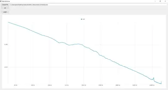 For example, each of the following plots displays the median amplitude vs. frequency with a $\log_{10}$ amplitude axis (Y) and a $\log_{2}$ frequency axis (X). The values for each were computed with a series of FFTs over the entire sample in blocks of 8,192 samples (the amplitudes are calculated as the magnitudes of the complex results):