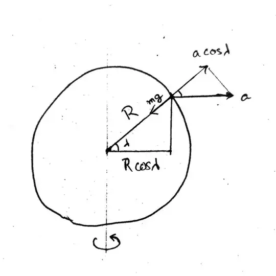 $$ mg' = mg + m \omega^2 R_e \cos\lambda , $$