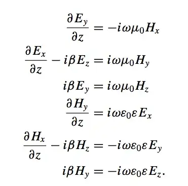 $$ 5) \frac{\partial H_{z}}{\partial x} + \gamma H_{x} = -j\omega\epsilon E_{y}$$