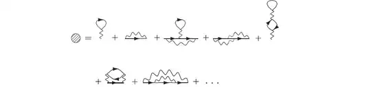 $(2) \quad\Sigma_{\textbf{p}}^{(1)}=-\delta^{ab}\frac{g}{L^d}(\frac{1}{N}\sum\limits_{\textbf{p}'}G_{0,\textbf{p}'}+\sum\limits_{\textbf{p}'}G_{0,\textbf{p-p}'})$