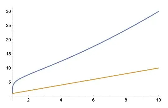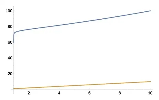 Above I have $y(r_A) = r_B(r_A)$ (in blue) plotted against $y(r_A) = r_A$ (in orange), for $R_s = 1$ and initial values $r_{A_0} = 10$ and $r_{B_0} = 30$. The behavior becomes even more extreme when $r_{B_0}$ is, say, 100: