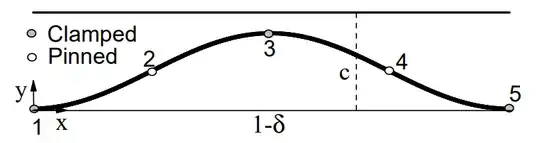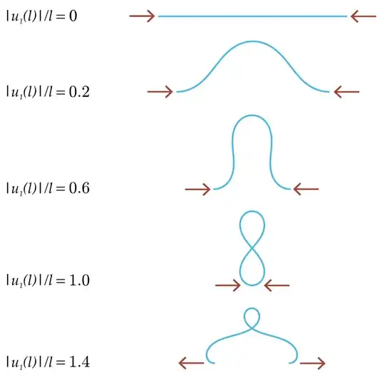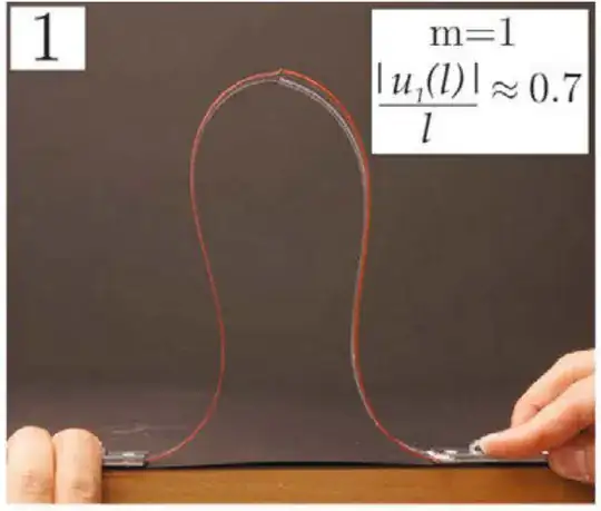 Elastica solutions typically involve elliptic integrals, whereas the bell curve is described (arguably more simply) by an exponential. Symmetry arguments here allow the first mode of the clamped–clamped elastica to be divided into four segments of the pinned–pinned case image source: