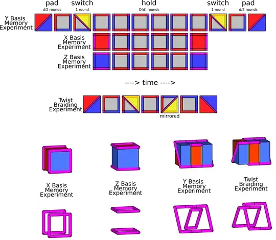 - Now, for the second slice, my understanding is that you will "turn on"/measure the stabilizers depicted in the bottom-right figure of this diagram for $d/2$ rounds, using the standard surface code stabilizer measurement circuit and schedule.