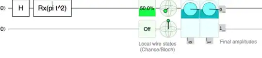 $$\Rightarrow \ Rx(\theta) \frac{1}{\sqrt{2}} \begin{pmatrix} 1 \\ 1 \end{pmatrix} \ = \ \frac{1}{\sqrt{2}} Rx(\theta) \begin{pmatrix} 1 \\ 1 \end{pmatrix} \ = \ \frac{1}{\sqrt{2}}\begin{pmatrix} \cos \theta/2 & -i\sin \theta/2 \\ -i\sin \theta/2 & \cos \theta/2 \end{pmatrix} \begin{pmatrix} 1 \\ 1 \end{pmatrix}$$