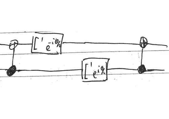 $$ \begin{bmatrix} 1 & 0 & 0 & 0 \\ 0 & 0 & 0 & 1 \\ 0 & 0 & 1 & 0 \\ 0 & 1 & 0 & 0 \\ \end{bmatrix} $$ such that we have the matrix representation of the circuit as $$ \begin{bmatrix} 1 & 0 & 0 & 0 \\ 0 & 0 & 0 & 1 \\ 0 & 0 & 1 & 0 \\ 0 & 1 & 0 & 0 \\ \end{bmatrix} \big( \begin{bmatrix} 1 & 0 \\ 0 & e^{-i\theta/2} \end{bmatrix} \otimes \begin{bmatrix} 1 & 0 \\ 0 & e^{i\theta/2} \end{bmatrix} \big) \begin{bmatrix} 1 & 0 & 0 & 0 \\ 0 & 0 & 0 & 1 \\ 0 & 0 & 1 & 0 \\ 0 & 1 & 0 & 0 \\ \end{bmatrix} = \begin{bmatrix} 1 & 0 & 0 & 0 \\ 0 & 1 & 0 & 0 \\ 0 & 0 & e^{-i\theta/2} & 0 \\ 0 & 0 & 0 & e^{i\theta/2} \\ \end{bmatrix} $$