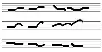 Musicologist Hugo Leichtentritt (1874–1951) describes the three- (and sometimes four-) voice texture thus: "A melody of painful, elegiac expression over a slow, almost sluggish, bass, in-between a winding middle voice [in sixteenth notes] which, despite its narrow range adds a great inner agitation."[5] A characteristic trait of the melody are the chromatic auxiliary notes played on the beat and approached by disjunct motion.[6]