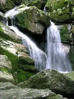 The stream rises on the northern slopes of Černé Mountain (1085 m) in the Jizera Mountains at an altitude of 1035 m. The average flow at the mouth is 0.16 m³ / s. It flows mainly north. During its relatively short flow creates innumerable waterfalls and cascades. The outflow rushes through a stream northwards through, where there is the forest, dividing into several branches to the Strašice.[3]