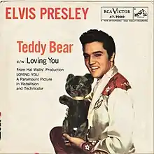 "(Let Me Be Your) Teddy Bear" is a popular song first recorded by Elvis Presley in 1957 for the soundtrack of his second motion picture, Loving You, during which Presley performs the song on screen. It was written by Kal Mann and Bernie Lowe and published in 1957 by Gladys Music.
