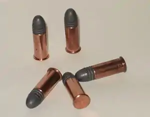 Much like the smaller .32 rimfire, the rounds were originally manufactured loaded with black powder. In the early 1900s, manufacturers switched to the "new" smokeless powder.