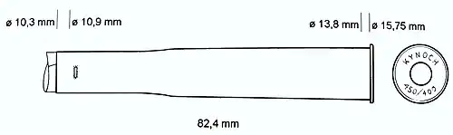 The .450/400 Black Powder Express cartridges served as the parent cases for the .450/400 Nitro Express cartridges, the same cartridge cases loaded with greater loads of cordite and heavier bullets to produce far more powerful rounds.[1][2]