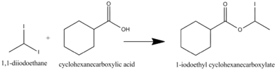 1,1-Diiodoethane is commonly used as a reactant in reaction such as SN2. The following are some examples of SN2 reaction using 1,1-diiodoethane as a reactant.[5]