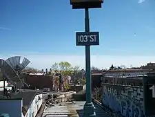 The 103rd Street–Corona Plaza station is a local station on the IRT Flushing Line of the New York City Subway, located at the intersection of 103rd Street and Roosevelt Avenue.[4] It is served by the 7 train at all times.[5]