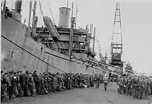 Other battalion members sailed from Antwerp in August 1945 as conditions permitted on various ships, including the SS Samuel Ashe, SS Mariposa, and SS Claymont Victory.[1]