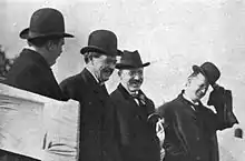 The dedication of Northwestern Field before the Beloit game, with Evanston mayor Barker, Chicago mayor Dunne, dean of the liberal arts college Holgate, and Northwestern business manager Dyche.