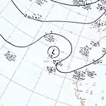Re-intensifying into a Category 3 hurricane early on September 3, Faith then attained its peak intensity with maximum sustained winds of 120 mph (195 km/h) and a minimum barometric pressure of 950 mbar (28 inHg).[6] One person drowned in the western Atlantic after his ship sank.[5] Heavy rainfall and strong winds pelted Bermuda, though no damage occurred.[23] The storm resumed a northeastward motion and weakened to a Category 2 hurricane early on September 4, before becoming extratropical about 480 mi (770 km) east-southeast of Cape Race, Newfoundland. The extratropical remnants continued northeastward and later east-northeastward across the far north Atlantic. On September 6, the remnants of Faith passed near the Faroe Islands, several hours before striking Norway and crossing Scandinavia. Thereafter, the system meandered over the Soviet Union and the Arctic Ocean for the next several days, until finally becoming unidentifiable near Franz Josef Land on September 15.[6] Three other drowning deaths occurred in the North Sea near Denmark.[5] A fifth death occurred after a man succumbed to injuries sustained during a boating incident related to the storm.[24] In Norway, heavy rainfall from the storm caused record high glacier melting, flooding some areas.[25]