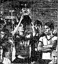![]() Giora Spiegel of Maccabi Tel Aviv lifting the trophy | |