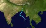 The monsoon trough spawned a tropical depression on November 8 in the southeastern Bay of Bengal. It tracked northward, then turned westward, strengthening to a 60 mph tropical storm before hitting eastern India on the 12th.