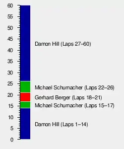 On the formation lap, Schumacher overtook Hill twice (once when leaving the dummy grid, and then once more further round the lap), before dropping back to take his second place on the grid for the start.