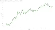 The 1994 bond market crisis, or Great Bond Massacre, was a sudden drop in bond market prices across the developed world.[1][2] It began in Japan and the United States (US), and spread through the rest of the world.[3] After the recession of the early 1990s, historically low interest rates in many industrialized nations preceded an unexpectedly volatile year for bond investors, including those that held on to mortgage debts. Over 1994, a rise in rates, along with the relatively quick spread of bond market volatility across international borders, resulted in a mass sell-off of bonds and debt funds as yields rose beyond expectations. This was especially the case for instruments with comparatively longer maturities attached. Some financial observers argued that the plummet in bond prices was triggered by the Federal Reserve's decision to raise rates by 25 basis points in February, in a move to counter inflation.[4] At about $1.5 trillion in lost market value across the globe, the crash has been described as the worst financial event for bond investors since 1927.[1][5]