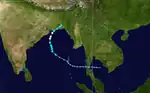 The first storm of the season developed on May 18 out of an area of low pressure over the Bay of Bengal. It reached its peak intensity with winds of 130 km/h (81 mph) before making landfall near Chittagong, Bangladesh. The storm dissipated shortly after.[4] Later that month, a short-lived storm developed over the Arabian Sea and dissipated the next day without impacting land.[5] The most intense storm of the season formed in early June off the southwestern coast of India. It slowly traveled towards the west, remaining relatively weak before turning towards the north and intensifying. The storm reached its peak intensity with winds of 195 km/h (121 mph) shortly before making landfall near Porbandar in the Indian state of Gujarat. The cyclone rapidly dissipated on the same day.[6]