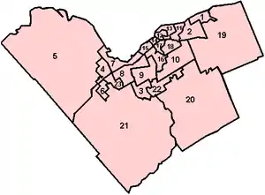 New ward boundaries were drawn for the 2006 election. Under the new plan, the size of city council will be increased by two members. The boundary commission made the following proposal that was adopted by city council: