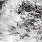 Late on September 20, an area of low pressure developed approximately 200 nautical miles (370 km; 230 mi) south of Chittagong, Bangladesh.[22] Under the influence of strong vertical wind shear and monsoonal activity in the Bay of Bengal, the system was unable to strengthen and the JTWC later reported that the system had dissipated.[23] However, on September 22, the IMD started monitoring the system as a Depression and initiated bulletins on the system, designating it BOB 03.[24] Late on that day, BOB 03 drifted northwest and made landfall over north Orissa close to Balasore.[25] After moving further northwestwards, the depression remained practically stationary over Jharkhand. By the evening of September 23, IMD reported that the depression had weakened into a well-marked low-pressure area in their final bulletin for the system, as the storm dissipated to a remnant low.[26]